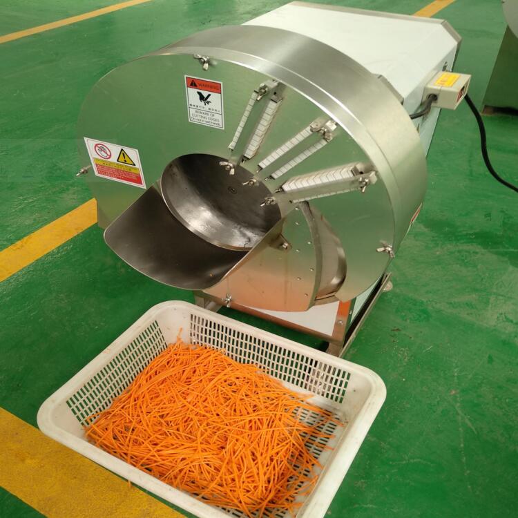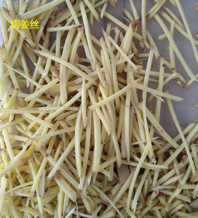 生姜切片切丝机  鲜笋 酸笋切片切丝,胡萝卜切细长丝,莲藕切细长丝,切割产品表面光滑,整齐。