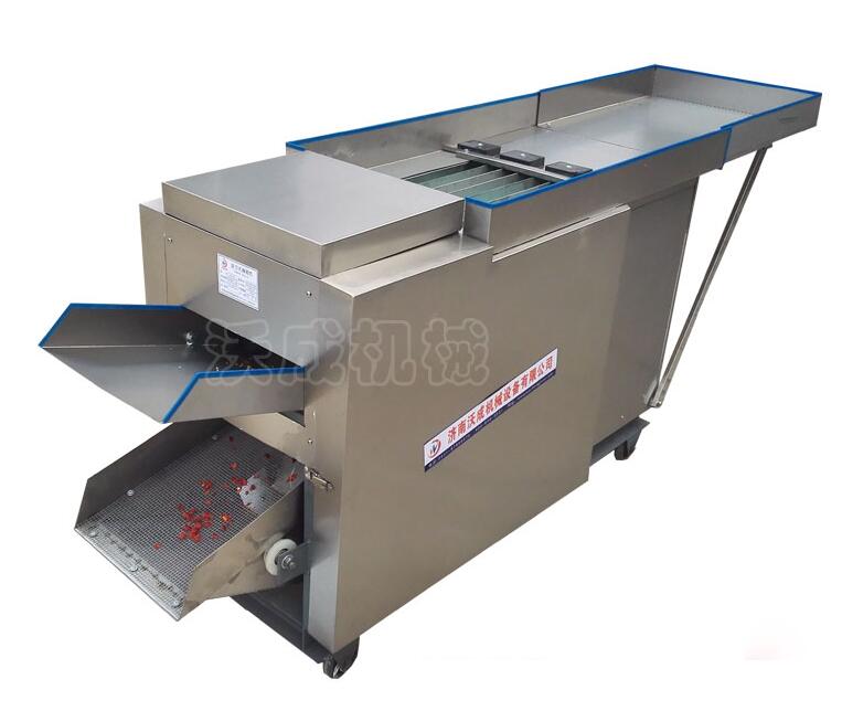 高效自动切辣椒段机 内有振动筛,可自动将辣椒和辣椒籽分离,常规切段规格为8mm,10mm,12mm, 15mm, 20mm。